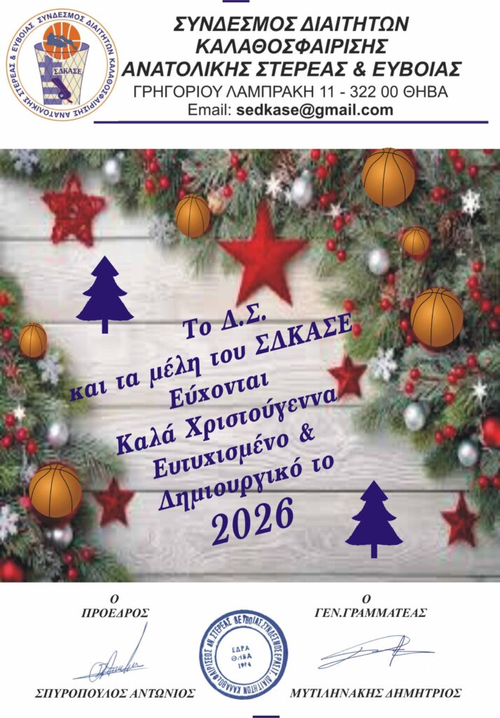 Το Δ.Σ. Σας Εύχεται Χρόνια πολλά, Καλά Χριστούγεννα & Ευτυχισμένο το 2026